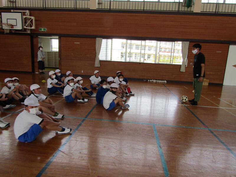 元Jリーガーの菅和範先生を招いて、体育の授業を行いました。