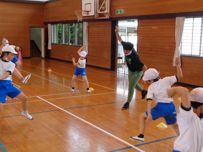 走る、跳ぶ、投げるといった運動のポイントを楽しく、分かりやすく教えていただきました。
