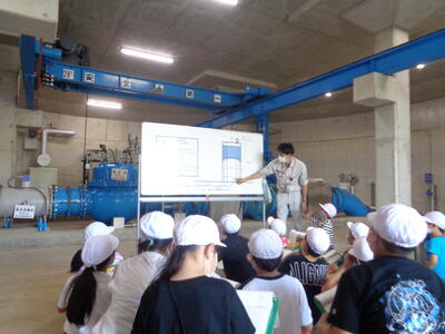 石法寺浄水場では、安全な飲み水がどのように家庭に届くのか教えていただきました。