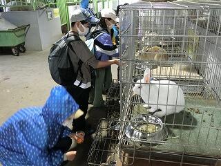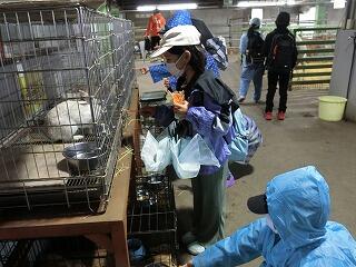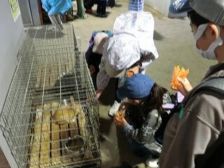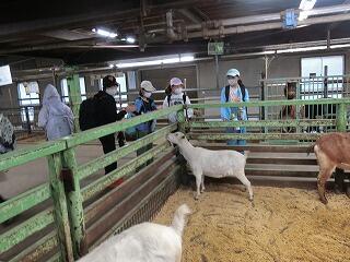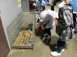 乳しぼりの後、ウサギやヤギに餌やり体験をしました。