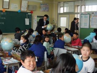 地球儀を使って世界の中の日本の位置について確認し、方位や緯度、経度などを学習しました。