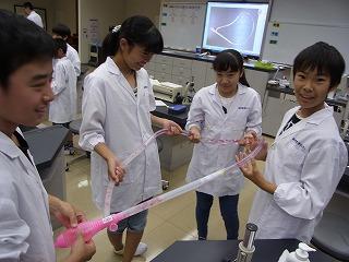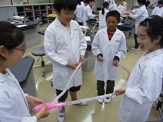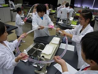 ◎血液の流れをモデルで実験しています