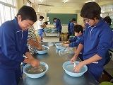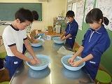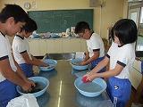 家庭科の実習をしました。手洗いで自分の運動会の練習で汚れた靴下を洗いました。