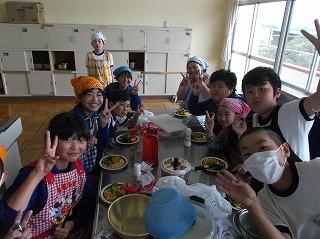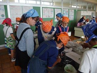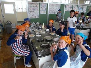 5名の保護者のボランティアの方にも教えていただいて、グループごとに協力して上手に調理することができました。