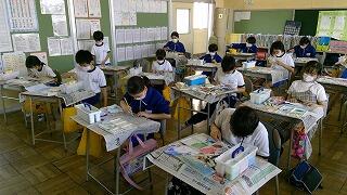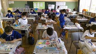 5年生は、今年開催される『いちご一会とちぎ国体』の応援のために、のぼり旗を作製しています。