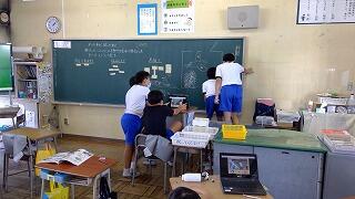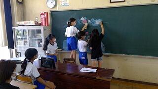 黒板を使ったり、画用紙を使ったり、紙粘土を使ったりして、アニメーションを作製中です。