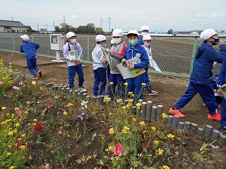 社会の学習で、学校のまわりを歩いて探検してきました。地図を持って、道を確かめながら、学校のまわりはどうなっているのかよく見てきました。「田んぼや畑が多いなあ。」「ビニルハウスが並んでいるね。」「いちごがたくさんあったよ。」「川に玉ねぎが流れてきたよ。」・・・と話していました。これからの学習に生かしていきたいです。