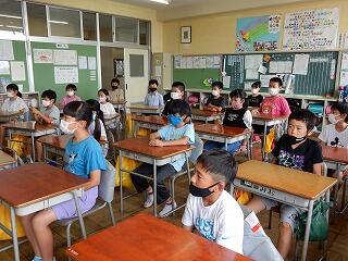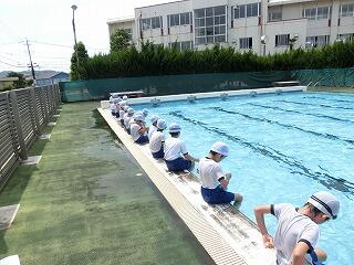 水泳の学習が始まり、プールがある日には朝登校すると「今日はプールに入れますか。」と確認する児童がたくさんいます。水泳の授業を楽しみにしている様子です。