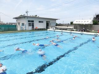 授業では、水に浮く練習や、児童の能力に合わせ、2つのコースに分かれて練習をしています。