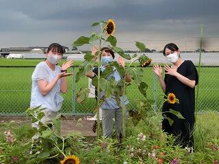さて、理科の授業で、種をまき育てていたヒマワリとホウセンカがさらに大きくなりましたのでお知らせいたします。ヒマワリは2m近く伸びています。ホウセンカも伸びてたくさんの花を咲かせています。