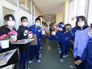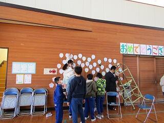 金曜日の卒業式に向けて、体育館の装飾をしました。