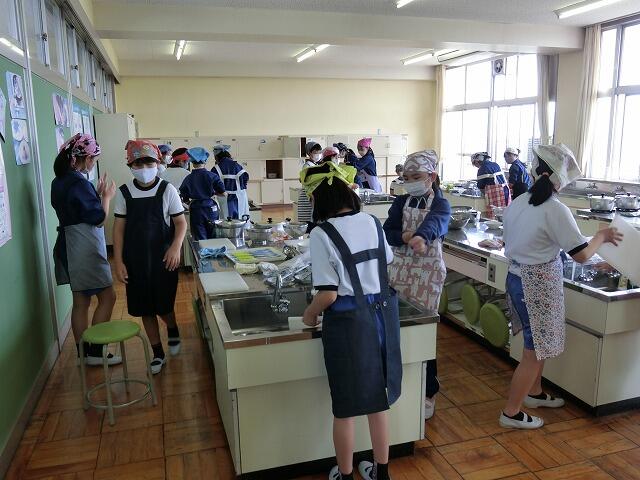 ジャガイモの調理を行いました。ジャガイモをゆでている間、片付けをしました。
