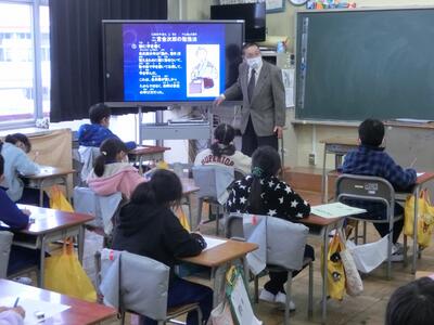 総合の「ほうとくタイム」で、蓮城院の荒木住職さんにお越しいただき、二宮尊徳先生についてお話をしていただきました。二宮尊徳先生の生い立ちや勉強法、大切にしていたことなどをエピソードを交えながら教えていただき、子どもたちは熱心にメモを取りながら聞き、たくさんのことを学ぶことができました。
