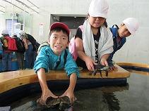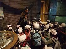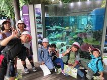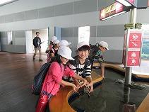 グ水槽でヒトデやウニなどを直接さわり、感触を楽しんできました。午後は、バックヤードツアーで普段入れない水族