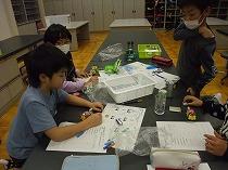 楽しみにしていた2回目の科学教育センターです。明かりがつく乾電池と豆電球のつなぎ方を試したり、テスター