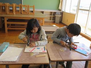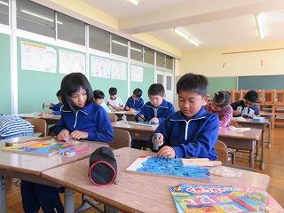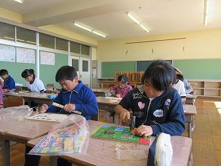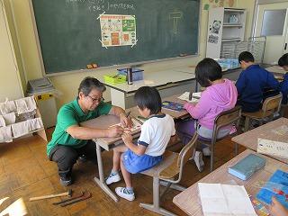 図工で初めて釘打ちの学習をしました。ゲストティーチャーとして、用務員さんに来ていただいて、釘の打ち方等を教わりました。