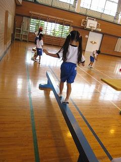 坂道での練習コースもあります。みんな、意欲的に取り組んでいました。平均台も練習しました。最後に、ドッジボールを