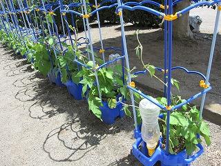 4月の授業参観で一緒に種まきをしていただいたあさがおが大きく育ちました。つるものびて、つぼみもついてきました。