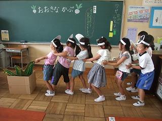 国語の学習「おおきなかぶ」で音読劇をしました。子供たちからやりたいということで、