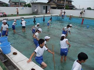 徹底的にきれいにして、楽しみな水泳の授業を気持ちよくできるように、みんな一生懸命働きました。