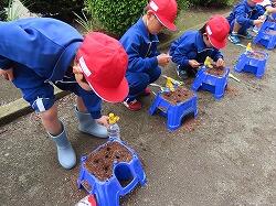 ☆生活科で「あさがおのたねまき」をしました。どんな花が咲くのかとても楽しみです。