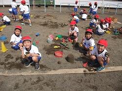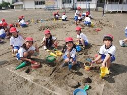 ☆図工で砂遊びをしました。1校時の涼しいときにやりました。雨上がりで、砂がしっとりしていました。あと1時間、涼しい時間にやる予定です。