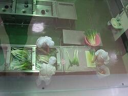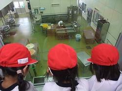 給食センターでは、給食を作っている様子を上から見学させていただきました。詳しく説明もしていただきました。