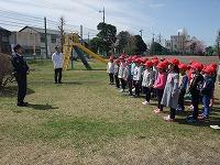 4月12日(水)、交通安全教室が行われました。物井駐在所の加藤さんや交通指導員の方々から、道路の安全な歩き方や横断歩道の正しい歩き方を指導していただきました。これから毎日安全に登校して欲しいです。