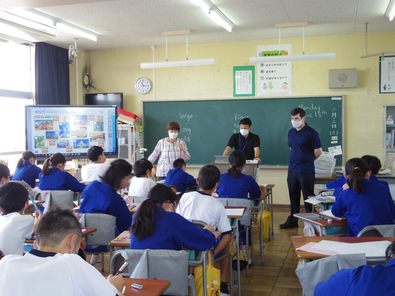 【AET・岡先生による一人一人のインタビューテストおよび外国語の授業の様子:6年生】