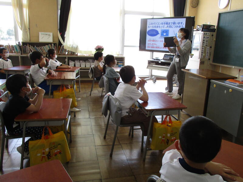 【ICT支援員の坂本先生からタブレットの使い方を学ぶ授業の様子:2年生】