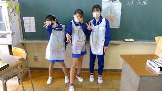 今日は消化管について学習しました。エプロンに内臓をかき写し、場所を確認しました。