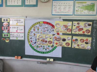 本日は、栄養教諭の先生にきていただいて、朝ご飯の大切さについて学習しました。