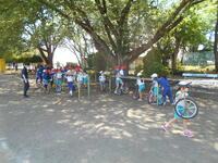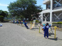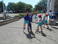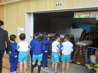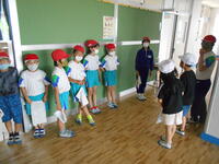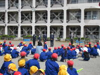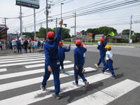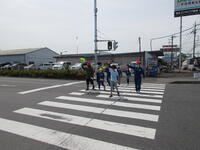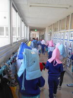 係の先生から「一列で間を開けずに歩くこと」「絶対走らないこと」「左右をしっかり確認すること」の注意を受け、実施しました。みんな真剣な表情で、取り組むことができました。