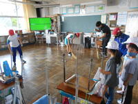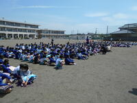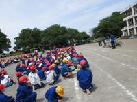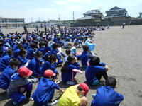 本日、避難訓練を実施しました。地震発生の後、理科室から火災が発生したとの想定で行いました。地震の避難では、教室で静かに机の下に避難することができました。また、火災発生後、校庭に避難しましたが、全員「も・お・か・し」の約束を守り、素早く避難することができました。避難完了後もよい姿勢で話を聞くことができました。