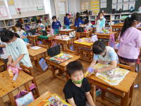 本日、1,2時間目に行いました。2年生が案内役になり、1年生に校内、特に特別室を紹介して歩く学習です。2年生は、お兄さんお姉さんとしてしっかり1年生をリードすることができました。最後に、1年生は2年生にお礼が言えました。