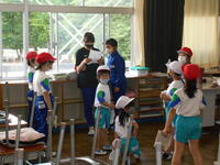 天気に恵まれた本日、交通安全教室を2時間目に行いました。安全な歩き方の御指導に、長田駐在所半田巡査部長、高木交通教育指導員さん、森田交通指導員さんと中島交通指導員さんの4名の方に御来校いただきました。