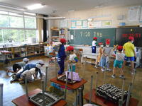 清掃開始前、6年生が1年生を迎えに行きました。各清掃班ごとに、6年の班長さんを中心に分担を決めました。その後、最初の清掃に取り組みました。みんな真剣に取り組むことができました。