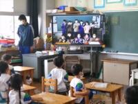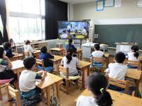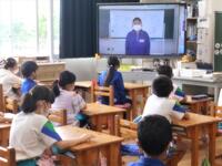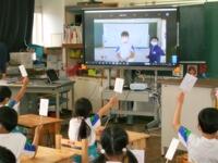 代表児童の 歓迎の言葉を聞いた後、長田小に関する〇×クイズに答えたり、企画委員が中心となって作成した 学校生活について紹介する動画を視聴したりしました。