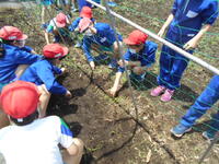 4年生では、今年度「ヒョウタン」を育てます。4月中に学校農園は耕されていましたが、本日4年生で、伸びた草を引き抜き、ヒョウタンの苗を植える準備をしました。これから、ここで、ヒョウタンを作ります。「たくさんできるといいね。」と子どもたちと話し合いました。