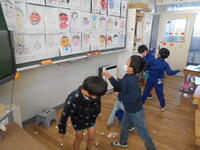 明日は節分です。まだまだ寒い日が続きますが 暦の上では 明後日から春となります。日も随分伸びました。今日の日没は17:07頃で、一年で一番 日暮れが早い12月初旬と比べて 約40分遅くなりました。それに伴い、2月からは、外遊びに出てから自宅に戻る時刻をこれまでより30分遅くし、16:30までに変更しました。3月末までの2か月間は、この時刻となります。