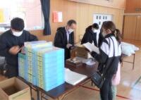 例年は、親子で参加していた入学説明会ですが、新型コロナウィルス感染症予防のため、本年度は、保護者のみの参加となり、地区ごとに4つの時間帯に分けて行いました。受付を済ませ、給食費の口座振替依頼書など関係書類を提出した後、学区内地図に自宅の位置を記入(氏名シールを貼付)し、通学班・下校コースを確認しました。その後、学用品販売コーナーで各自必要な物品を購入し、終了となりました。