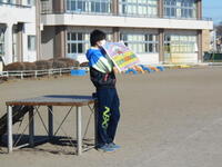 今日の1年生は、生活科で凧あげを行いました。強風の中で実施しましたので、写真のようにみんな元気よく上がりました。走らなくでもぐんぐん上がる凧に子供たちは大満足でした。しかし飛びすぎて隣の畑に墜落したり、友達同士で糸がからまってしまったりして、問題が続出でしました。指導がすみましたら、児童に凧を持たせますので、安全なところで親子で凧あげをしてみてください。