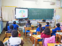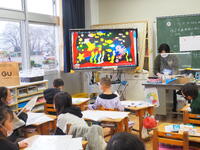 1年1組 図工 おはなしからうまれたよ 真剣にお話ビデオを視聴していました。
