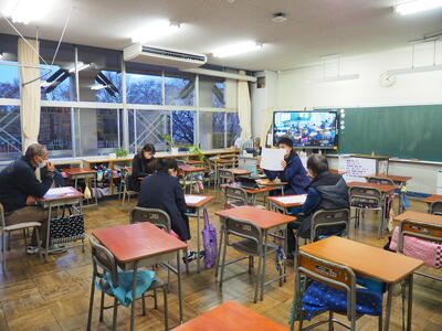 1年2組は、11月28日(月)に授業動画を撮り、視聴しながら授業研究を行いました。