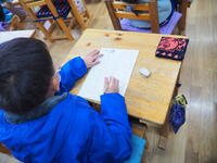5年2組 図工 版画 下絵を頑張って描いていました。