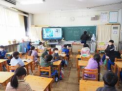 1年1組 図工 おはなしからうまれたよ 真剣にお話ビデオを視聴していました。