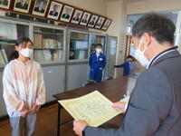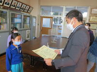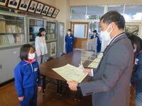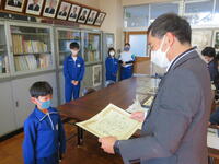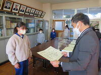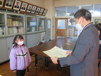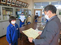 今日は、芳賀地方芸術祭の絵画及び川柳、短歌の部の賞状伝達式がありました。給食時に放送で受賞者のお知らせがあると、各クラスから拍手が起こっていました。昼休みには校長室で、校長先生から一人一人賞状をいただきました。みんな緊張した面持ちで、式に臨んでいました。とてもうれしそうでした。次回の賞状伝達は今週の金曜日と終業式に行います。入賞した皆さん、おめでとうございました。