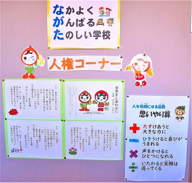 12月2日(金)から校内人権週間が始まりました。人権週間についての話や人権に関する絵本の読み聞かせ、スローガンや人権を意識させるような資料の校内掲示、学級ごとの「思いやりの木」の作成、人権標語の掲示、担任による人権に関する作文の朗読等多くの内容を実践しています。これらの活動を通して、児童・教職員の人権意識の醸成を図りたいと思います。