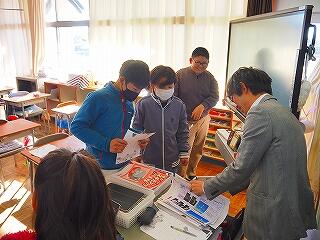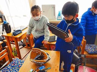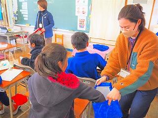 その後、各教室でみんなに大谷選手からいただいたグローブをよく見て、触ってもらっています。