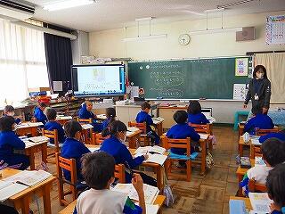 1月17日(水)の業間から3時間目に、真岡警察署のスクールサポーターに御協力いただき、不審者侵入を想定した避難訓練と防犯教室を実施しました。